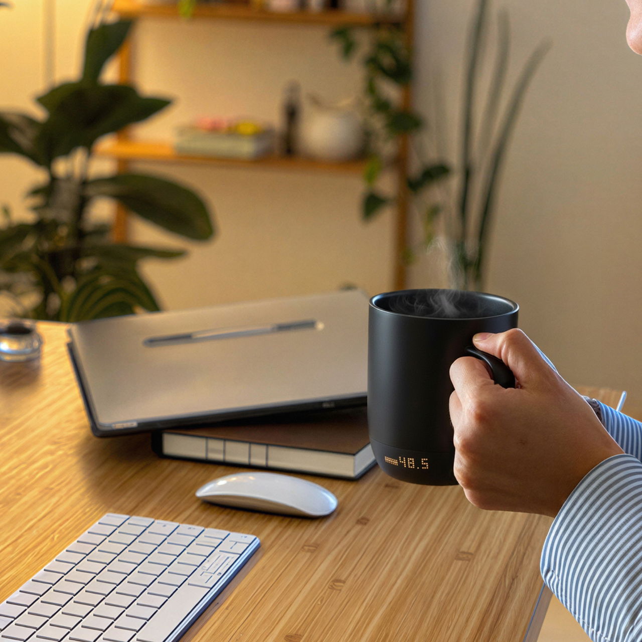 LED on the mug. You see your temperature without touching your phone. You know it's perfect. Simple.